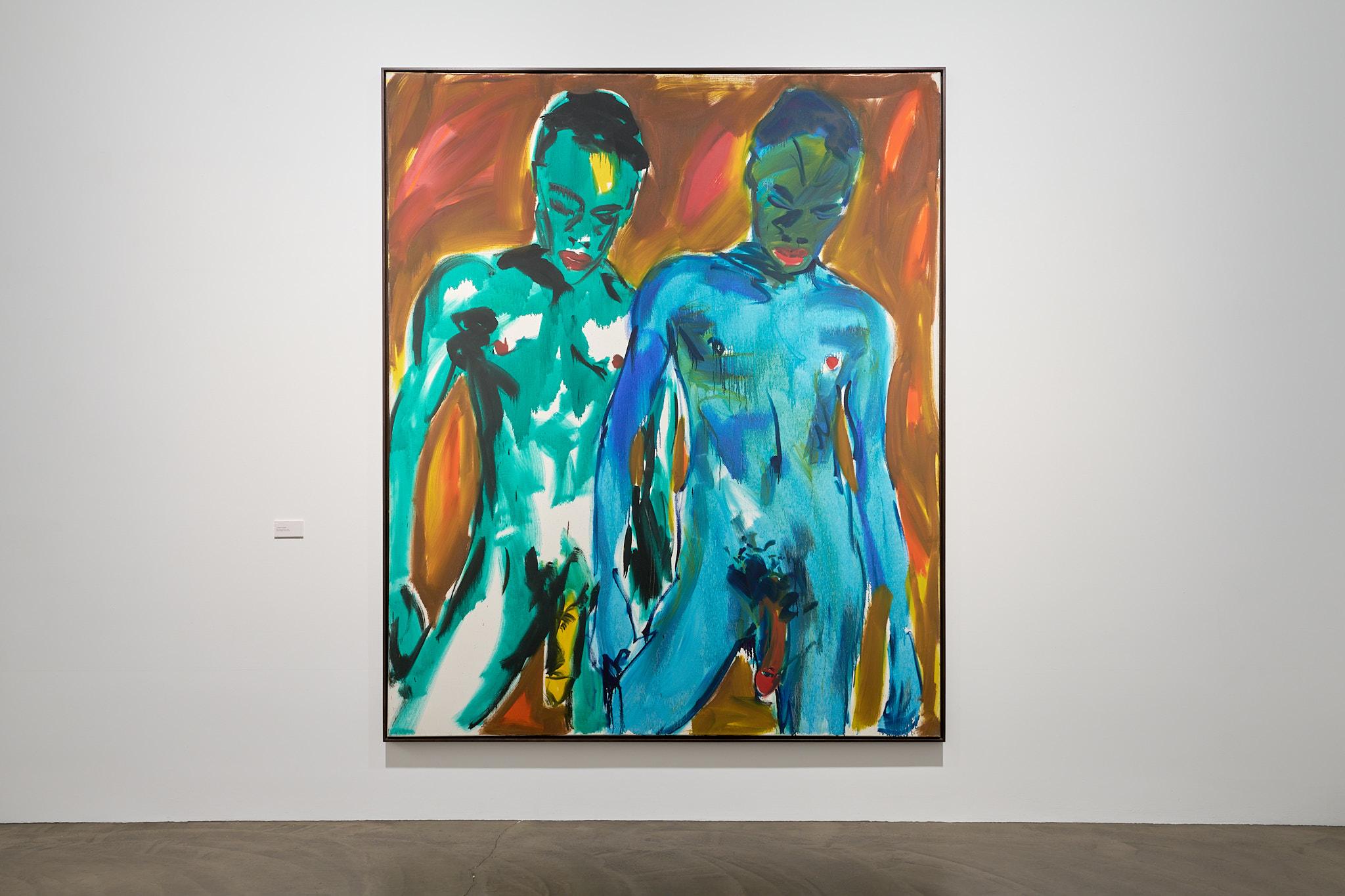 Im Zentrum der Ausstellung steht der Akt, nicht als klassisches Sujet, sondern als Ausdruck existenzieller Freiheit, als Sinnbild für Lust, Identität und Verletzlichkeit. Die ausgestellten Werke zeigen den menschlichen Körper als Schauplatz des Begehrens und der Selbsterkenntnis, oft erotisch oder explizit, immer direkt und ohne Verklärung. Besonders die männlichen Akte, die in den Gemälden von Fetting, Castelli und Salomé dominieren, sind dabei Ausdruck eines emanzipatorischen Selbstverständnisses. Sie stehen für eine künstlerische und zugleich gesellschaftliche Bewegung, die in den 1980er-Jahren für sexuelle Selbstbestimmung kämpfte und den Körper als Ort der Befreiung verstand. Vor allem Fetting und Salomé, beide eng mit der Schwulenbewegung jener Zeit verbunden, machten ihre Kunst zu einem Statement gegen Scham, Repression und Unsichtbarkeit. In „NACKT“ wird das Nacktsein so zum Symbol einer Haltung: der Unverstelltheit, des Stolzes, der Lebenslust.
