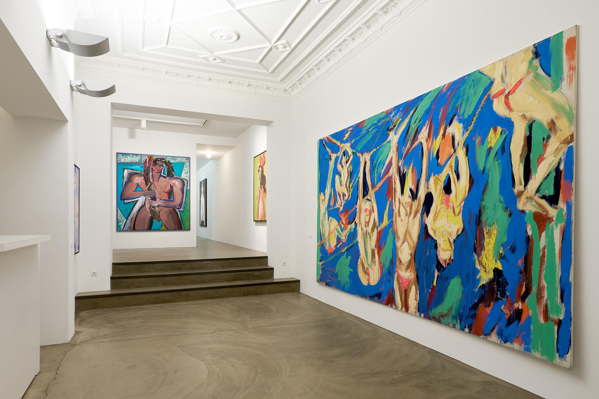 Anlässlich ihres 30-jährigen Bestehens präsentiert die Galerie Deschler Berlin die Ausstellung „NACKT“, mit Werken von Rainer Fetting, Elvira Bach, Luciano Castelli und Salomé. Die Schau versammelt Gemälde aus den späten 1970er- und 1980er-Jahren – die Zeit, in der sich die sogenannte Gruppe der „Jungen Wilden“ in Berlin formierte. Diese Künstlerinnen und Künstler stellten sich mit gestischer, expressiver Malerei gegen die intellektuelle Strenge des Minimalismus und der Konzeptkunst. Sie setzten auf Farbe, Emotion und das Unmittelbare, auf eine Kunst, die das Leben atmet und sich dem Körper verschreibt.