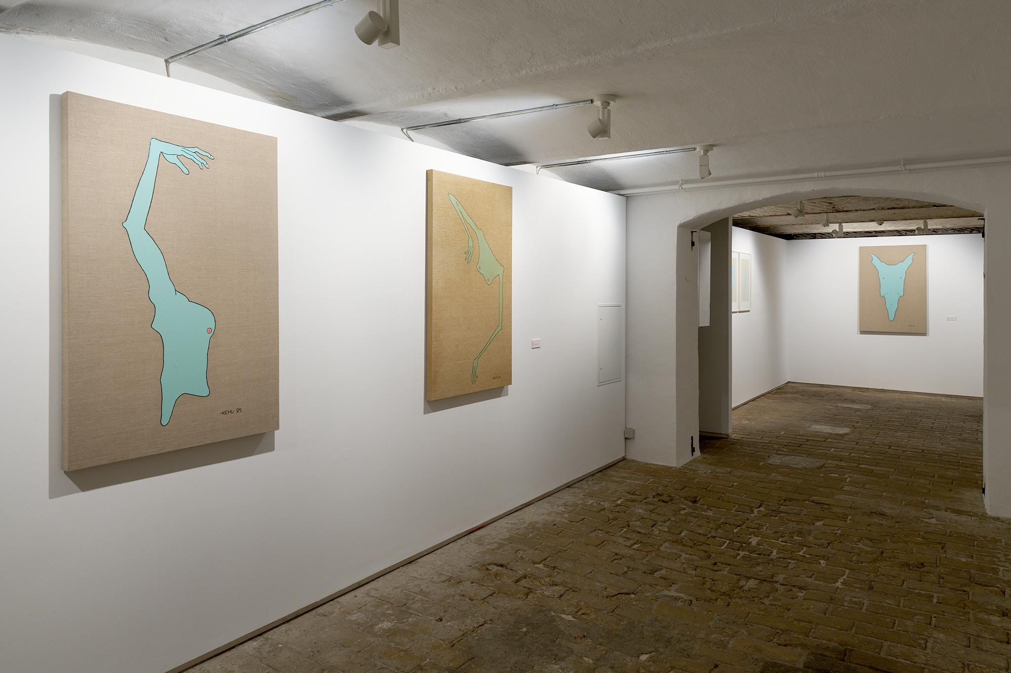 Parallel zur Hauptausstellung präsentiert die Galerie im Basement eine besondere Hommage an den 2024 verstorbenen Künstler Gerhard Kehl, dessen Werk und tatkräftige Mitwirkung die Anfänge der Galerie entscheidend mitprägte. Seine „Blaue Serie“, gezeigt unter seinem Künstlernamen -KEHL-,war bereits Gegenstand der allerersten Ausstellung im Jahr 1995. 30 ereignisreiche Jahre später kehrt sie nun zurück und bildet ein stilles Gegenüber zur expressiven Hauptschau. Kehls Arbeiten, geprägt von Reduktion und kontemplativer Tiefe, von einem Spiel zwischen lackierten Oberflächen und hintergründigem Humor, erinnern an die experimentelle Offenheit, mit der Marcus Deschler seine Galerie vor drei Jahrzehnten gründete. Der Blick zurück ist hier kein nostalgischer, sondern ein lebendiger Dialog zwischen Ursprung und Gegenwart, zwischen den Anfängen einer mutigen Galeriearbeit und der Beständigkeit ihrer Haltung.