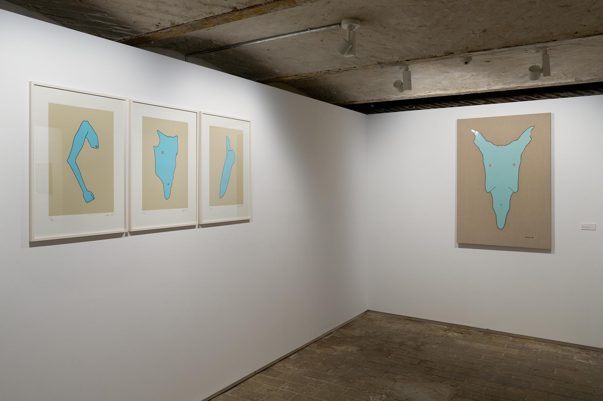 Parallel to the main exhibition, the gallery’s basement presents a special homage to artist Gerhard Kehl, who passed away in 2024 and whose work and active involvement shaped the early years of the gallery. His Blue Series, shown under his artist name -KEHL-, was the subject of Galerie Deschler’s very first exhibition in 1995. Now, 30 eventful years later, it returns as a quiet counterpart to the expressive main show. Kehl’s works, characterized by reduction and contemplative depth, by the interplay of lacquered surfaces and subtle humor, recall the spirit of experimentation with which Marcus Deschler founded his gallery three decades ago. This look back is not nostalgic but a living dialogue between origin and present—a conversation between the bold beginnings of the gallery and the enduring consistency of its vision.